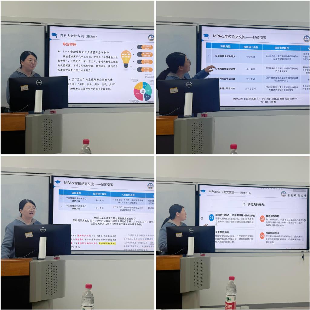 在MPAcc论文写作指导环节,孙兰兰副教授系统阐述了三大核心方法:一是将论文选题与科研项目、政策热点紧密融合,并以本人主持的教育部产融结合课题为例,分享如何指导学生完成农业企业相关论文,从而提升研究的前沿性与实践价值;二是推动论文写作与案例开发有机结合,引导学生在撰写论文的同时开发教学案例,既强化了论文的逻辑框架,也促进了实践素材的积累;三是注重研究方法与企业实践的结合创新,在研究中引入机理分析与一手调研,并紧密围绕企业实际需求展开探讨,提升研究的应用效能。