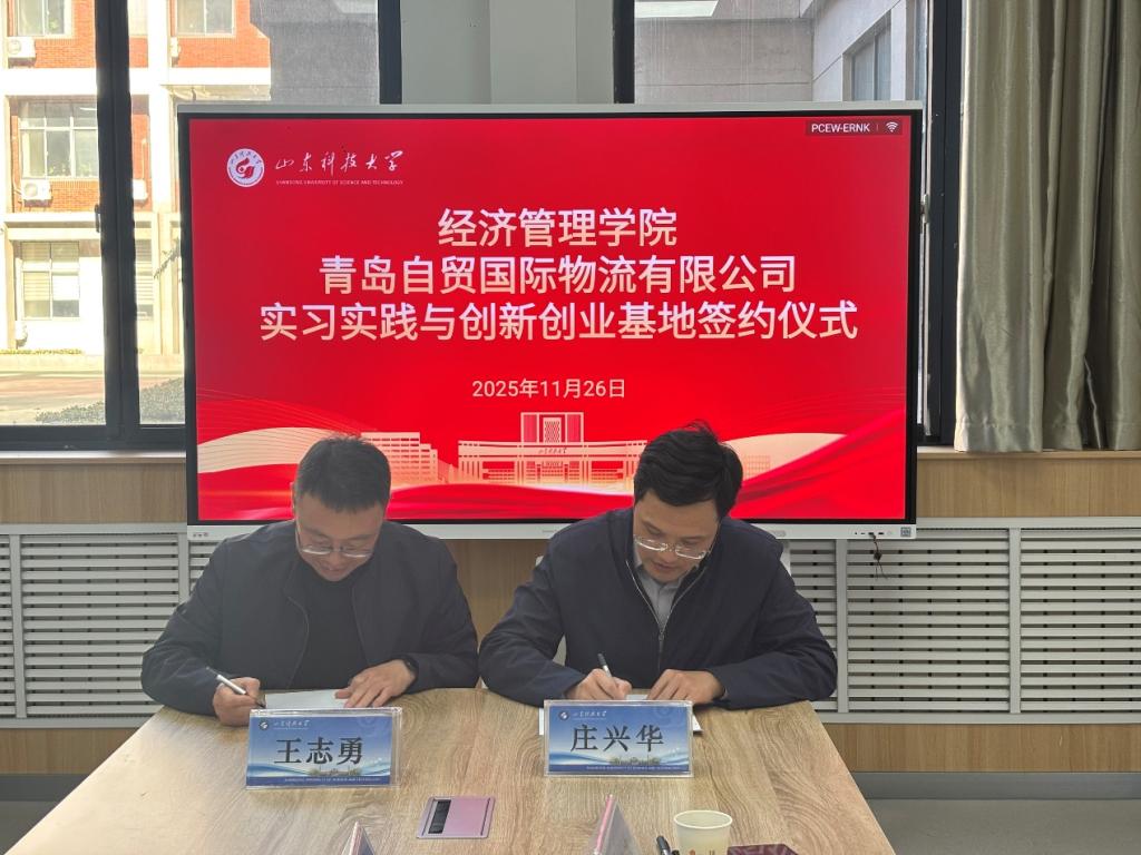 为进一步深化校企合作,推动产教融合提质增效,11月26日,山东科技大学经济管理学院与青岛自贸国际物流有限公司举办校企合作座谈会。青岛自贸国际物流有限公司总经理王志勇、副总经理王月鹏、经管部长任百富,经济管理学院党委书记庄兴华、党委副书记兼副院长江谭、经济与贸易系党支部书记马风涛、物流管理系党支部书记姜力文、辅导员李含聪共同参加座谈。