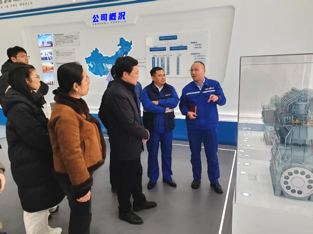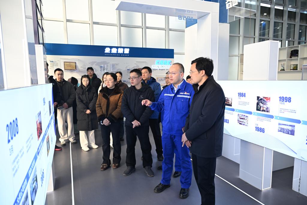 活动伊始,中船发动机有限公司营销质量部长许成峰带领学院师生代表参观了公司展厅,并全面介绍了公司的发展历程、核心业务、技术优势及在海洋动力装备领域的重大贡献,展现了企业深耕绿色动力创新、服务国家海洋强国战略的责任担当,让师生对船舶动力行业发展现状与未来趋势有了直观且深刻的认识。
