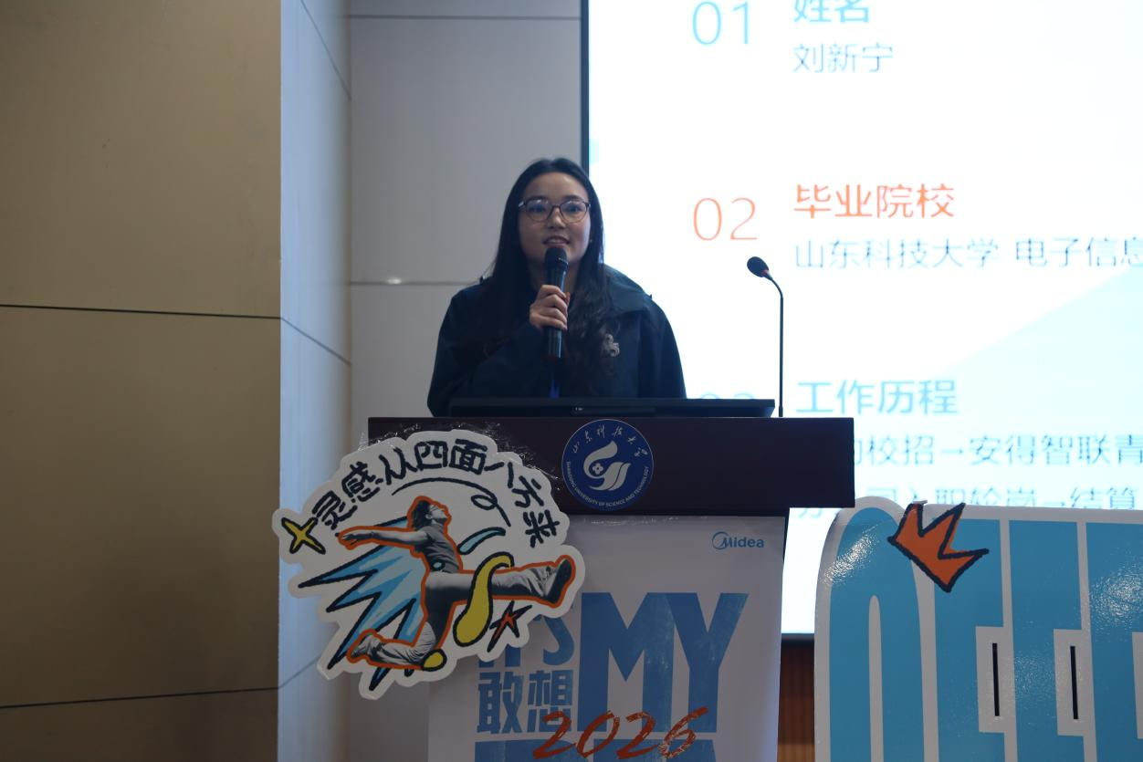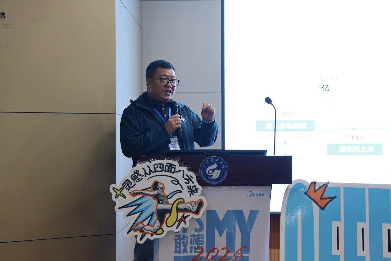 10月13日,经济管理学院在学院楼四楼报告厅举办美的集团专场就业宣讲会。美的集团安得智联营销经理李龙江、青岛分公司财务主管刘新宁、济南分公司HRBP主管魏鑫担任主讲人,2026届毕业生参加活动。