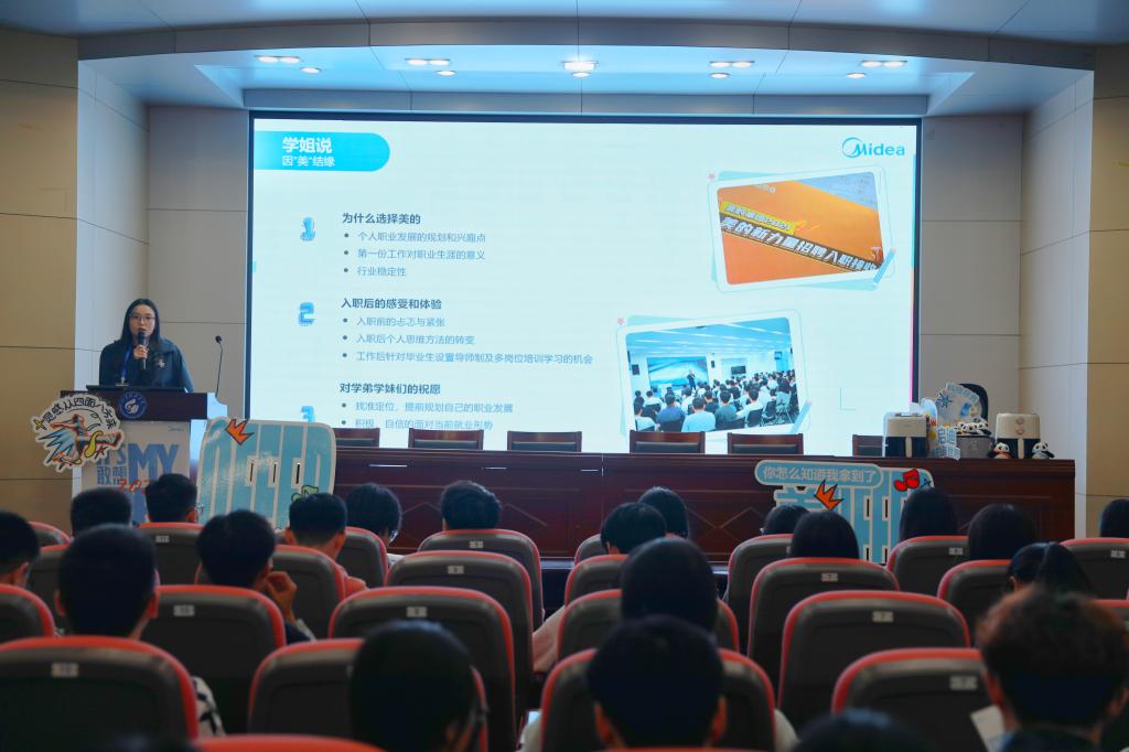 李龙江系统介绍了企业发展历程、综合实力、文化理念以及当前岗位需求,帮助同学们了解企业发展脉络、创新方向与人才引进策略。校友刘新宁结合个人实际工作经历,从日常工作内容、薪资福利体系、职业成长计划等方面,分享了入职心得体会与职业成长经验。互动环节中,同学们积极提问,现场氛围融洽。
