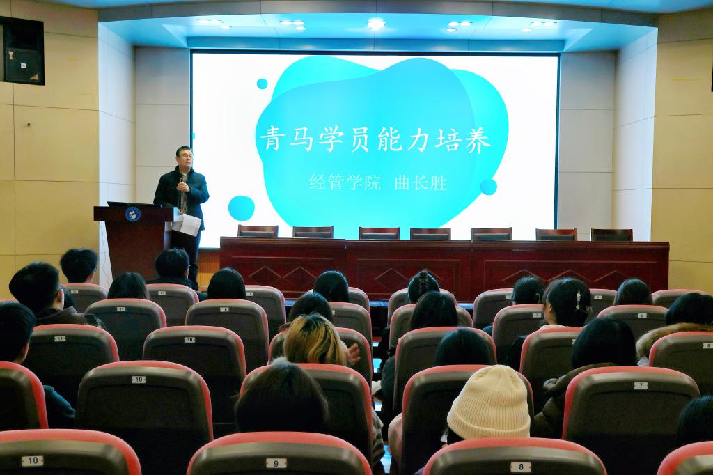 11月24日,经管学院在学院楼四楼报告厅举办青马工程培训班(第一期),邀请学院团委书记、学工办主任曲长胜担任主讲人,学院全体青马学员参加。
