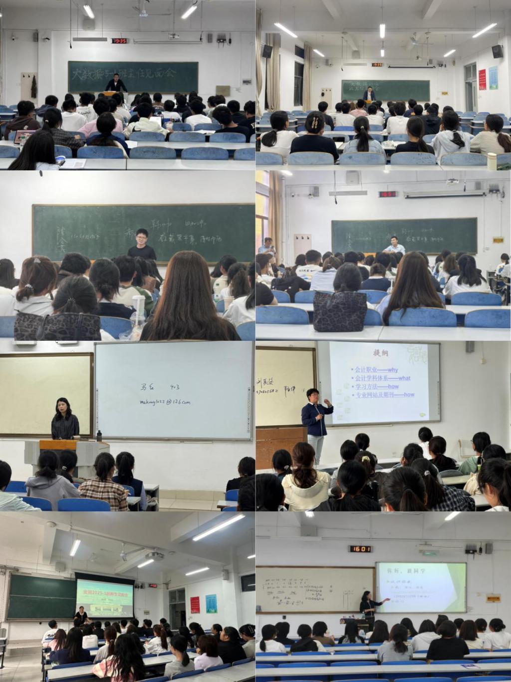 大数据管理与应用专业班主任王书伟、姜涛,工商管理专业班主任袁赛、王家坤,供应链管理专业班主任李保勇,国际经济与贸易专业班主任王璐,会计学专业班主任马红、刘英姿,金融学专业班主任孙玉红、王彩霞结合个人求学、教学及工作经历,通过经验分享、互动交流与案例分析等多种形式,系统介绍了各专业特色优势、课程体系设置以及未来就业发展方向。同时,引导同学们积极转变学习方式,由被动接受知识逐步转向主动探索与实践,鼓励大家踊跃参与学科竞赛及社会实践活动,注重平衡学业发展、人际交往与心理健康,不断提升自我管理能力,建议合理规划阶段性目标,善用各类校园资源以增强综合素质与竞争力,并在集体生活中互帮互助、共同进步。